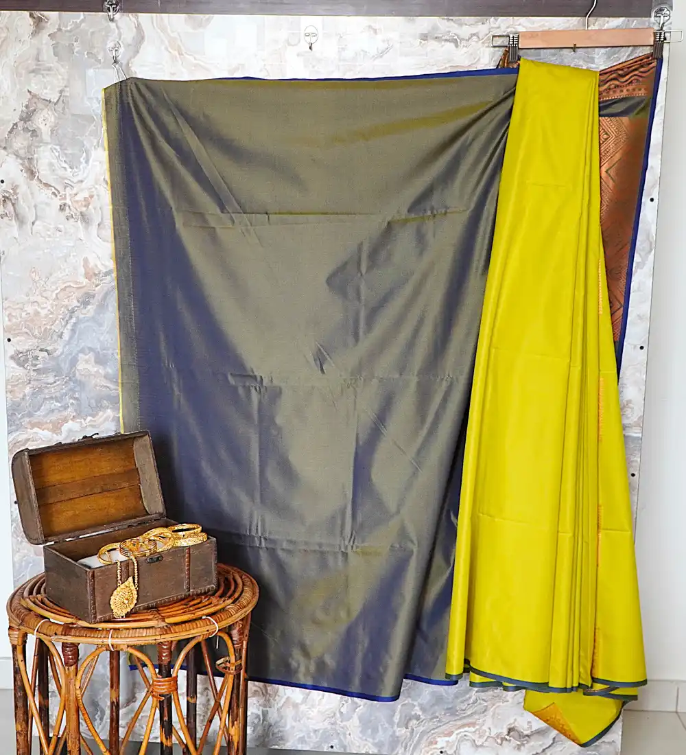Lime mustard Yellow with olive grey pallu