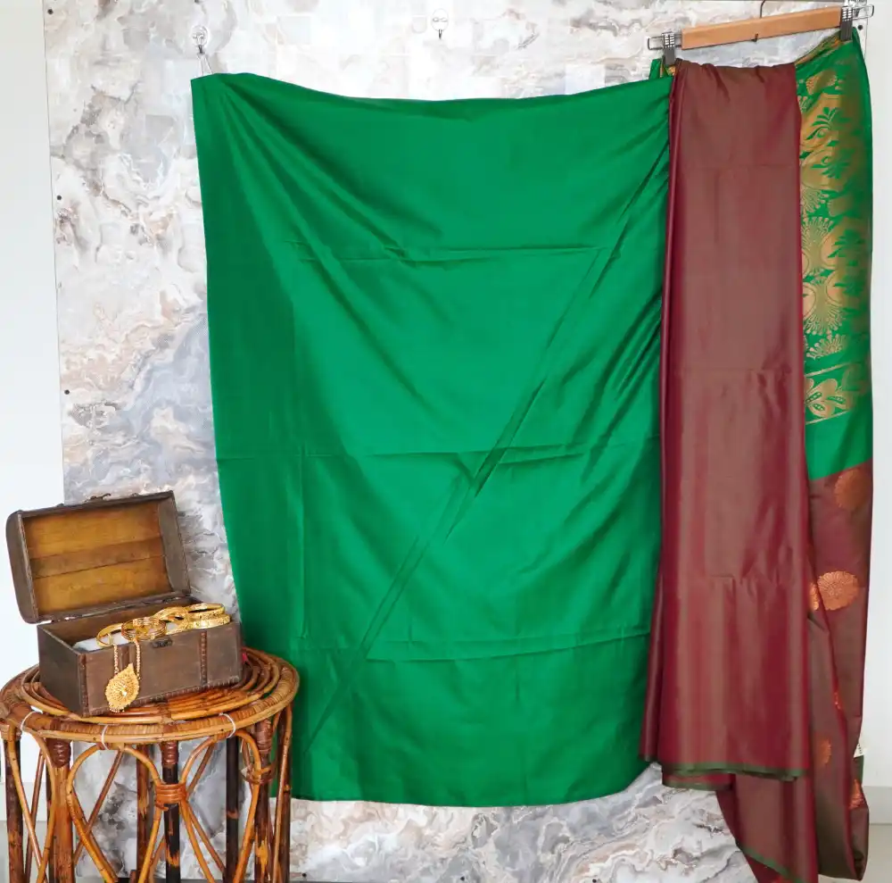 Be the first to review “Metallic brownish-maroon with green pallu.”