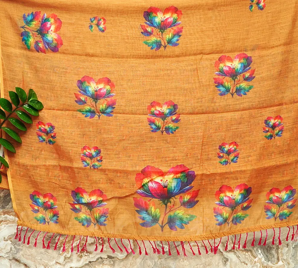 Add a vibrant and contemporary touch to your wardrobe with this beautiful mustard-gold linen saree, featuring a rich slub-textured base that enhances its natural charm.