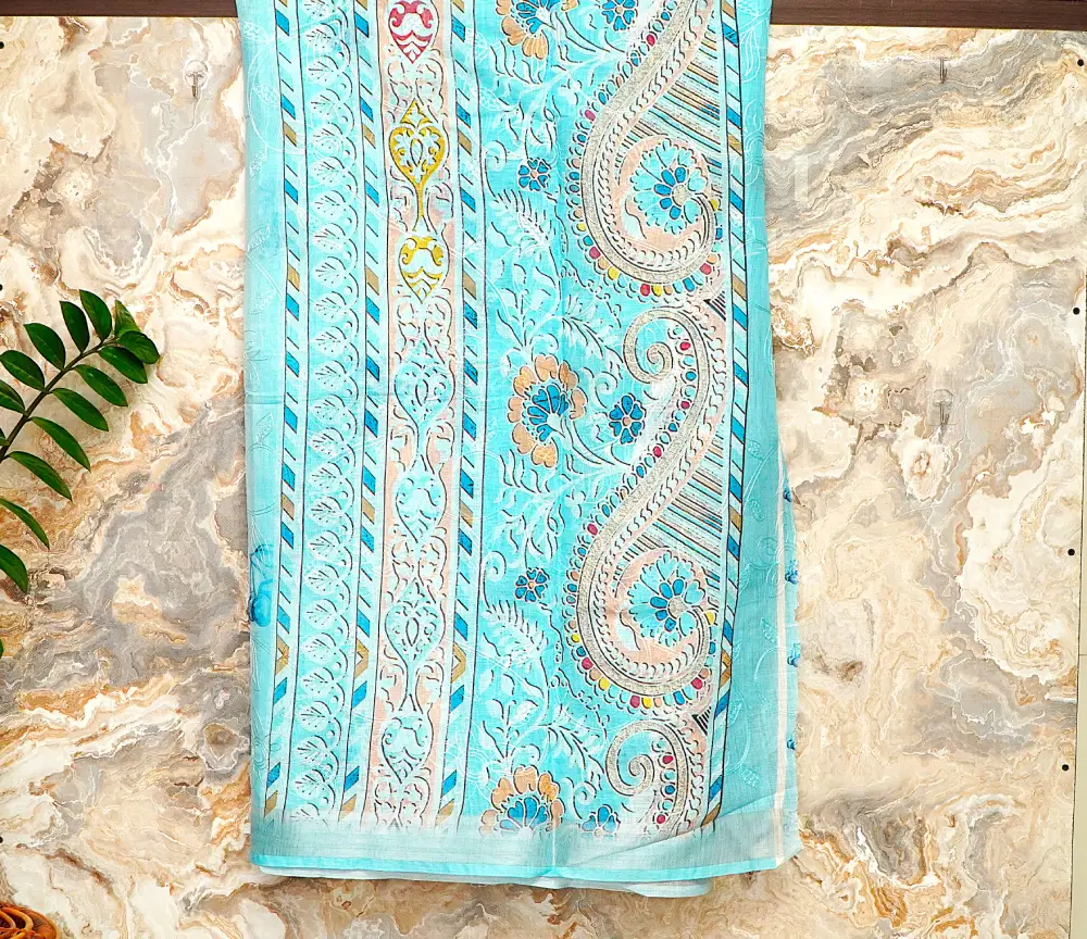 Crafted from breathable linen fabric, this saree is lightweight, comfortable, and perfect for casual outings, day events, and stylish gatherings.